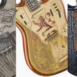 • The House Targaryen Stratocaster, made with an alder body featuring carved “dragon scales” on the front and back, along with a hand-cut, engraved sterling silver three-headed dragon inlay on its first fret, as well as a stained leather pickguard featuring the Targaryens’ three-headed dragon sigil — $35,000