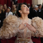 Natalie Portman went in another direction. Her Dior cape look was embroidered with the names of women who directed movies last year but were not nominated at the 92nd Academy Awards. Who are they? The names included Lorene Scafaria (“Hustlers”), Lulu Wang (“The Farewell”), Greta Gerwig (“Little Women”), Marielle Heller (“A Beautiful Day in the Neighborhood”), Melina Matsoukas (“Queen & Slim”) Alma Har’el (“Honey Boy”), Céline Sciamma (“Portrait of a Lady on Fire”) and Mati Diop (“Atlantics”)