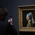 A women takes a picture of a painting by the Dutch master Johannes Vermeer titled, 'A glass of wine' at the Rijksmuseum in Amsterdam pic.twitter.com/J3HX3QAUvR