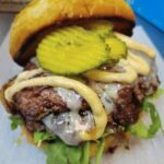 The big smashburger comes with two patties of a custom ground beef blend, special sauce with a mayonnaise and paprika base, and house made bread and butter pickles on a Mancini’s brioche bun.