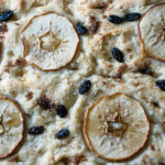 Those rolls will still show up on my table. But so will a beautifully decorated focaccia. Actually, I’m going to make two. One is a savory garden style with a floral motif styled from peppers, onions and poppy seeds. The other is a sweet harvest bread with cross-cut apple slices and a sprinkle of raisins and brown sugar.