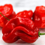 It’s a cross between the ghost pepper and a habanero. The bright red roundish peppers pack quite a punch. It’s considered by many to be the hottest pepper in the world.