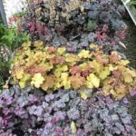 There are endless varieties of heuchera and heucherella. The plant likes shade but can take some sun, especially in the morning and early afternoon hours.