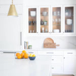 When you put things back onto your shelves and into your drawers, organize for the way you use your kitchen. Put knives near cutting boards close to the sink. Gather coffee supplies together on a tray. For one of her clients, Engelbach made a station for the school-age kids to put their lunches together, with drawers for snacks and containers.