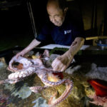 More than 25 years ago, Menashi retired after a career as a chemical engineer and began volunteering at the New England Aquarium in Boston. He’s spent 7,800 hours — the equivalent of about four years working full time — hanging out with octopuses, the aquarium said.