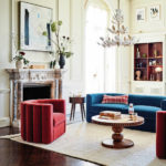 In a collaboration with London-based Soho Home, Anthropologie offers the Adriana chair; in a deep terracotta velvet, the chubby, channel-seamed silhouette echoes Italian postmodern design. Kardiel’s curvy Miranda gold-velvet two-seater has an Austin Powers flair.