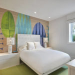 And there’s loads of lively art, from photoprints of giant waves to San Francisco artist Rex Ray’s groovy surfboard wallpaper, as well as a group of whimsical, painted shark heads from California ceramicist Lorien Stern.