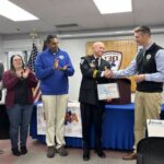 State Reps. Jeremy Shaffer and Arvind Venkat, as well as representatives from the offices of state Sens. Devlin Robinson and Lindsey Williams and U.S. Sen. Dave McCormick, presented a U.S. flag that was flown March 3 over the Pennsylvania Capitol in Harrisburg in honor of Dell’s service as an EMS professional.