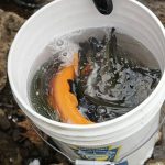 “If you just pour the bucket of trout slowly into the water, it may seem like a more gentle approach, but the fish often just slide into the mud and their gills fill with silt, which makes it hard for them to breathe and swim and more likely to perish,” he said. “By giving the fish a good toss from the bucket, you are perking them up and causing them to swim, which gives them the best chance at survival.”
