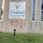 Rabbi Yisroel Altein woke up to what he called a troubling sight Monday morning — red spray paint on the facade of Chabad of Squirrel Hill that read “Jews for Palestine.”