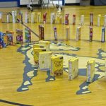 They organized a combination food drive and Science, Technology, Engineering and Mathematics lesson by asking students and staff members to donate cereal boxes, which then were placed strategically around the building for a large-scale demonstration of the principles of force and motion.