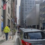 Schmitt, wearing a yellow reflective jacket and with a measuring tape dangling from his pocket, was taking measurements last week on granite curbs Downtown that need to be replaced before the draft.