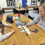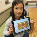 Fourth grader Charlene “Cici” Xu plays 24, a math game, with her teacher, Leah Rea. Cici scored in the top 1% of all 26,524 students who competed in the online national Sumdog math competition in September.