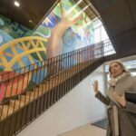 One of the stairwells showcases a vibrant mural commissioned by local artist Gregg Valley. Navigating the stairs provides views of a majestic oak tree near the quad that’s over 100 years old.