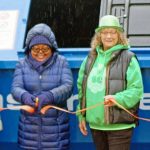 Officials from Verona and Oakmont joined representatives of the PRC and Michael Brothers to participate in a ceremonial ribbon cutting for the bin amid raindrops on March 17. Some of those in attendance started adding to the first dumpster full of glass.