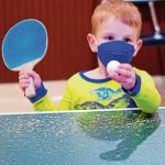 More than 30 teams of students participated in a co-ed volleyball tournament in the main gymnasium, while the auxiliary gym served as the setting for a dodgeball competition. Table tennis and a bag toss were set up in the hallways, and wing- and pizza-eating contests took place as the event neared its conclusion.
