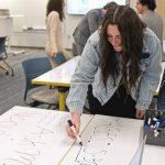 “It’s a room built for collaboration and feedback and brainstorming,” English teacher Shannon Roos said. “It’s great when you have kids working on projects together or they’re giving each other feedback, because they can work through their ideas is real time. Especially with all the whiteboarding, they can track their progress as they’re going.”