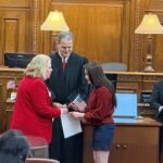 Before reciting the pledge, the group listened to the national anthem, sung by court employee Eric Sciulli.