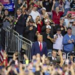 He took the stage shortly after 7:30 p.m. Some supporters were seen leaving the venue as Trump’s speech entered its second hour.