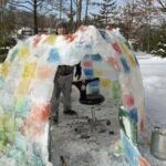 “My boys are bad with their colors so this was a good way to teach them,” said Mickey Kunkel, who used food coloring and large trays to create frozen blocks for the igloo.
