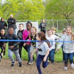 The new play equipment at the Monroeville school was unveiled a few hours after classes ended on April 28, and dozens of students turned out with their family members to celebrate the addition.