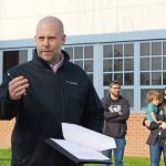 “We’re not going to have a traditional cutting,” Eric Knorr, Steward principal, told the youngsters after ceremonial blue plastic was stretched across one side of the playground. “We’re going to have you walk through the ribbon.”