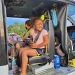 Grant beamed happily as Flight Nurse Trista Weiss invited them to take a seat inside the flying ambulance.