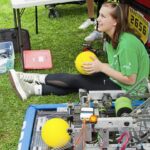 Kids could bounce and slide on inflatable contraptions, visit with furry friends at a petting zoo and participate in plenty of activities, including trying to catch balls launched by a Gateway Quasics Robotics Club robot.