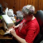 She said she used a lot of her unemployment compensation toward making masks.