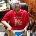 Corbin’s husband of 24 years, Harland, helps deliver the masks. Their sons, Kaeden, 14, and Owen, 19, have assisted in acquiring materials and helping around the house when their mother is sewing and embroidering.
