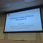 The three-and-half hour presentation titled, “The Realities of Use of Force Encounters” covered legal and policy considerations, use of force and human performance, and video analysis and video evidence considerations. The types of force discussed included use of force, lethal force and less lethal force.