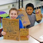 This year, students in 15 classes participated, using markers and colored pencils to draw all sorts of pictures, from flowers and clean water to the earth, itself. Many of the bags encourage conscientious people to “pick up trash,” save our oceans” and in at least one case, drive a certain make of electric vehicle.