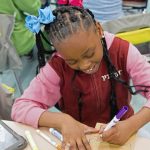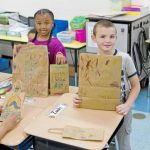 Students at Dr. Cleveland Steward Jr. Elementary School spent an afternoon using their artistic abilities to decorate 500 brown paper bags with environmentally friendly images and messages. The bags will be delivered to the businesses that donated them, Giant Eagle in Monroeville and Wall Avenue Express in Pitcairn, for use by customers on April 22, which is Earth Day.