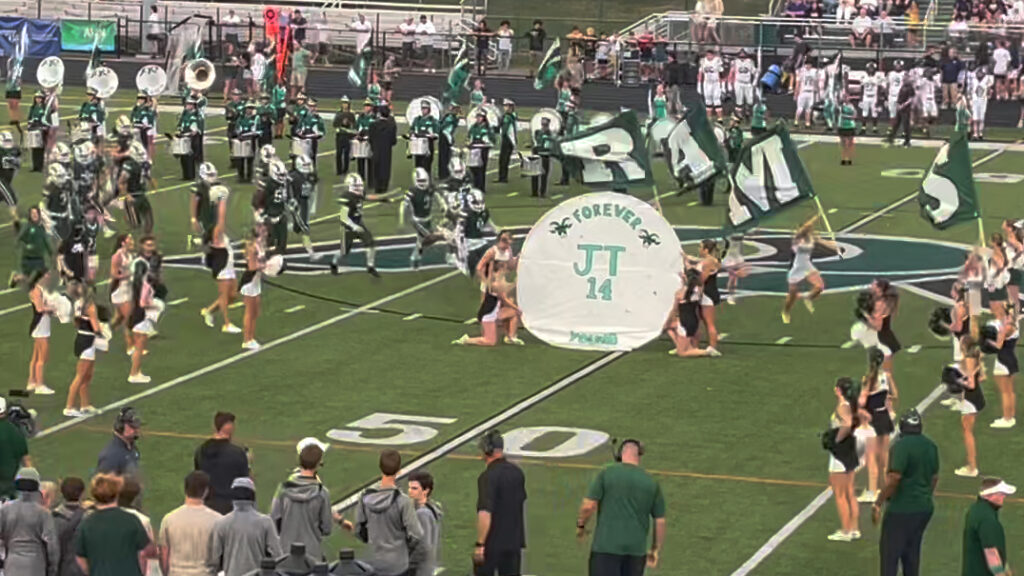 The Pine-Richland Rams, he said, will wear helmet decals with the initials J.T. and Jonathan’s uniform number — 14. The crowd then sat quietly for 14 seconds of silence.