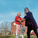 Her daughter, 3-year-old Gwendolyn, recently helped with the soil sampling.