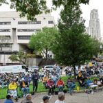 Richards joined more than 100 Pittsburgh Pirates fans at what remains of Forbes Field in Pittsburgh’s Oakland neighborhood to listen to a rebroadcast of an old baseball game play by play, then celebrate when Bill Mazeroski’s home run clinched the 1960 World Series pennant for “The Battlin’ Bucs.”