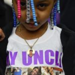 Four-year-old Kychelle said she misses Antwon, who was her uncle. She wore a heart-shaped necklace with his photo and a T-shirt calling him her hero.