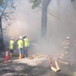 Margaret Carter, who lives on Harlow Street, said she looked outside after hearing an explosion and saw the house collapse. After hearing a few more explosions, the home burst into flames that were as high as the roof of the neighboring house, she said.