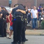 Officers were called to attention, and a bagpiper played, walking as he went, so the sound waned. Officers began to disperse. One sobbed and clung to a fellow officer. Among Hall’s family and friends, someone wailed.