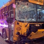 Two vehicles and the school bus were heavily damaged, Komoroski said. The others were driven from the scene.