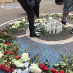 The vigil began just after 2 p.m. at Hawkins Village in Rankin, where Rose’s mother lives. Several dozen people formed a circle and sang. They brought red roses, purple ribbons, white flowers and white candles.