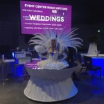The space located on the second floor includes 5,000 square feet in the foyer and 20,000 in the main area. A spacious Green Room contains lighted mirrors and plush couches and chairs for VIPs to lounge on. There’s even a red carpet.