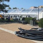 An additional tent was set up next to it where tables and other decorations were being assembled.