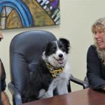 Oakley serves as a mascot of sorts, hanging out in Jackie’s office, cruising the hallways, relaxing in the conference room, enjoying her favorite snacks, like ice cream, and even greeting visitors at the door.