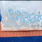 The graffiti was painted on the concession stand at Quarry Field near the intersection of South 18th and Crosman streets, officials said. Police are investigating, and public works crews are cleaning and covering the graffiti.