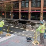 The lawsuit alleges that the sinkhole was caused by damage to a 48-inch storm sewer at the intersection that is owned by PWSA and because of a disconnected 6-inch private commercial water line there.