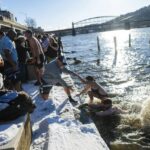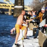 Brave participants jumped into the Monongahela River along the Mon Wharf in Pittsburgh Thursday morning at the annual Pittsburgh Polar Bear Plunge.