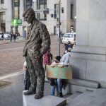 The group in the early going made their way along Sixth Avenue, Wood Street and the Boulevard of the Allies heading toward Smithfield Street before stopping at the City-County Building.