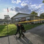 Shoes and other personal items were scattered around the scene Sunday morning as community members wandered nearby and cars drove slowly past the community center on North Fifth Avenue.