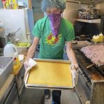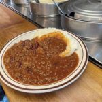 He offers several choices, all of which come with cornbread. Choose from spicy chicken, classic beef, veggie/vegan and spicy beef and pork. The newest offering is barbecue turkey chili.